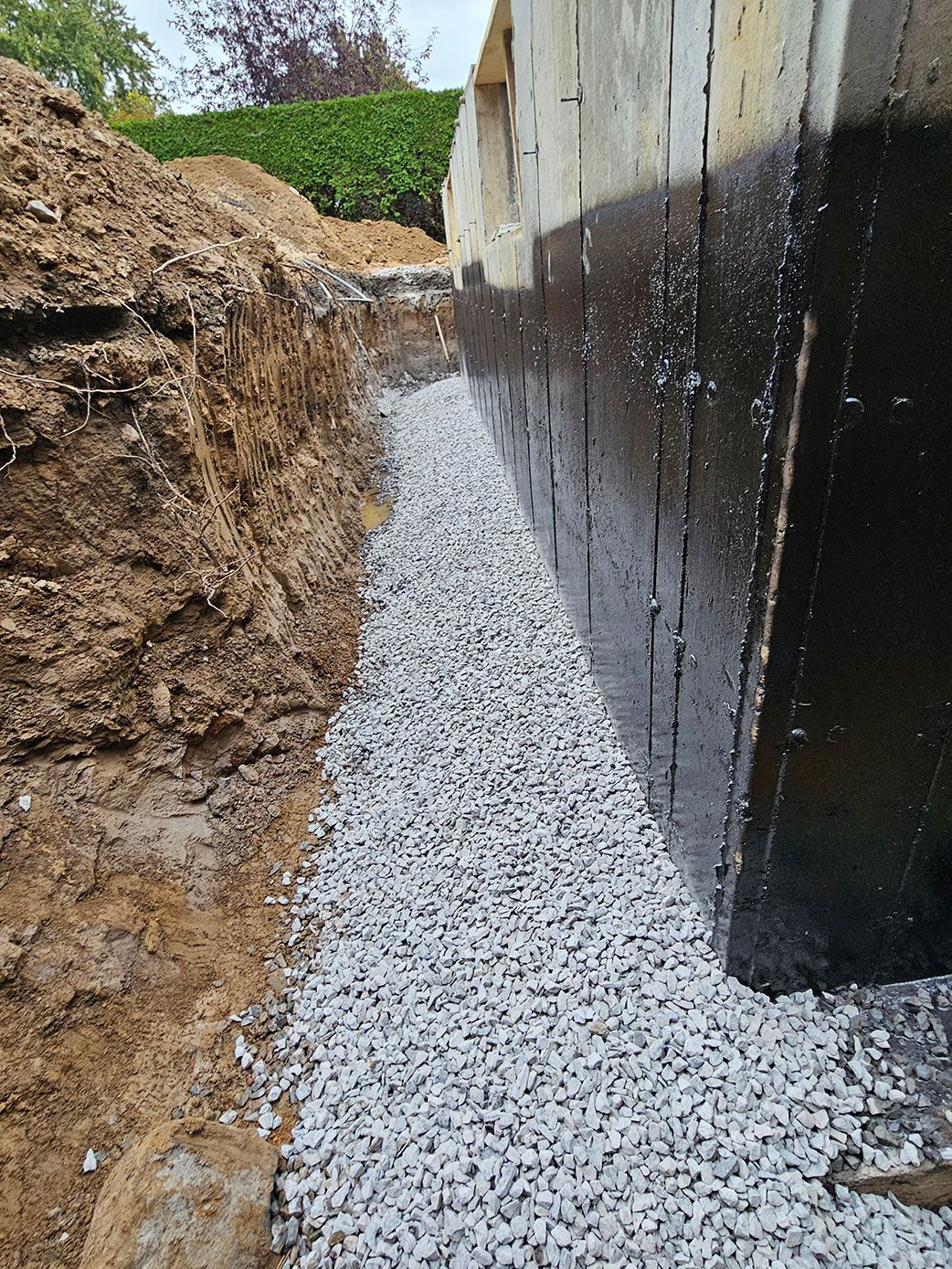 L'installation d'un drain français neuf assure une évacuation efficace des eaux souterraines loin de vos fondations. Construction Prime effectue chaque installation selon les normes en vigueur, en utilisant des matériaux offrant une performance durable.